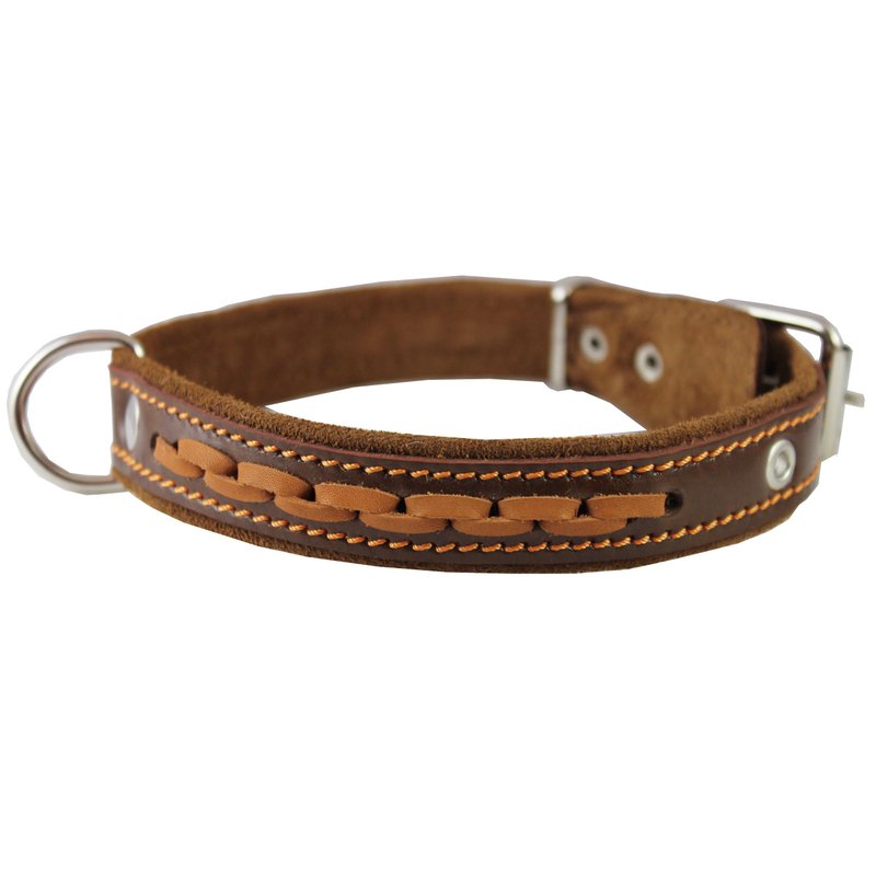 Brown Genuine Leather Braided Dog Collar, 1" Wide. Fits 14"-17" Neck.