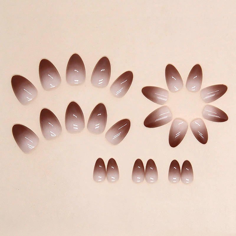 Brown Gradient Press on Nails Almond Short Fake Nails with Ombre Designs Fall Fall Nails Press ons Glossy Glue on Nails Full Cover Acrylic Artificial Stick on Nails for Women 24 Pcs