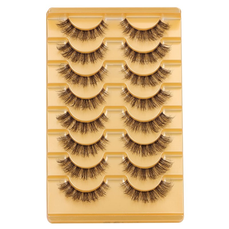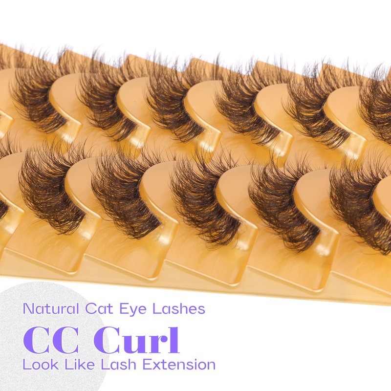 Brown Lashes Eyelashes Cat Eye Natural Look Lash Extension D Curl Wispy Clear Band Brown Eyelashes Fluffy Faux Mink Lashes Pack by Mavphnee