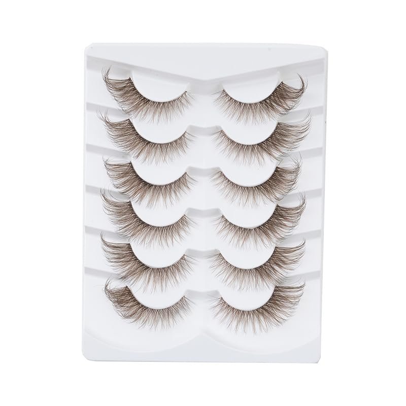 Brown Lashes, Natural False Eyelashes Extensions, 8D Faux Wispy Mink Brown Lash, Long Thick Fox Cat Eye Lashes Full Curly Eyelash, D Curl Salon Anime Fake Extensions Strip Pack for Beginner 6 Pairs