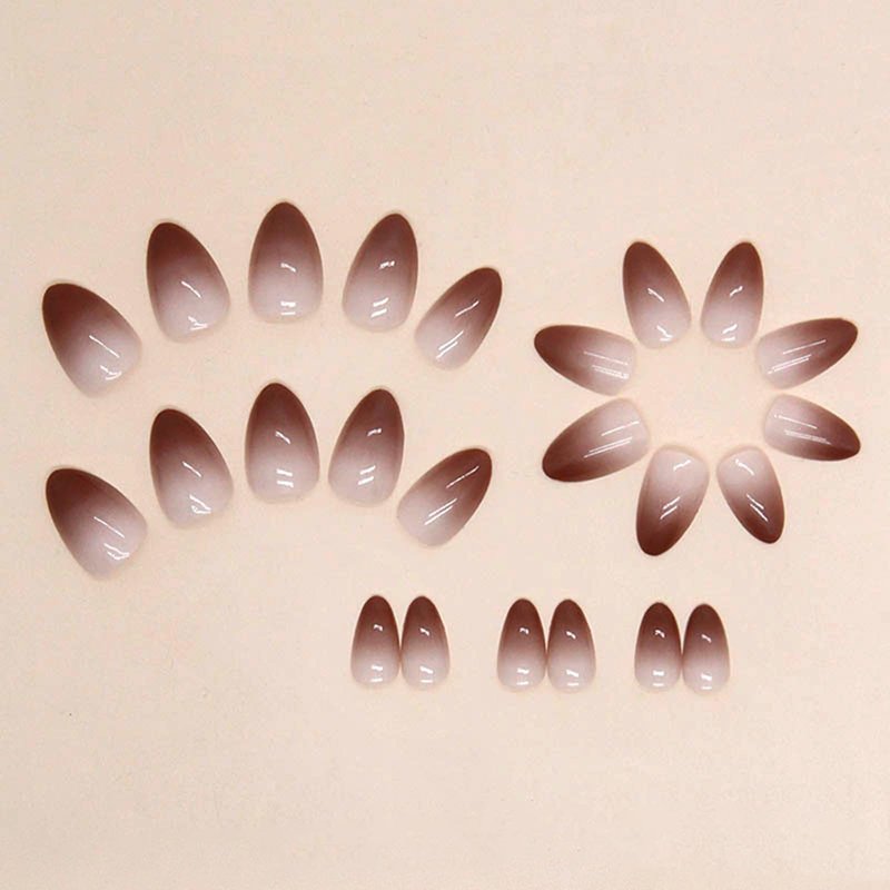 Brown Press on Nails Short Fake Nails Almond Shape False Nails Gradient Brown Acrylic Nails Glossy Glue on Nails Full Cover Artificial Nails Fall Winter Stick on Nails Short Press on Nails for Women