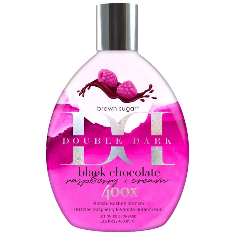 Double Dark BLACK CHOCOLATE RASPBERRY CREAM Bronzer 13.5oz Lush berries and delectable cream combine for simple perfection in this ultra dark tanning treat. A delicate balance of beautiful bronze and fantastically rich skin conditioning seemingly turn back the clock for a youthful glow, with color so decadent it becomes worthy of the most special of occasions. 400X Plateau-Busting Bronzers give skin the richest dark color possible Heaping amounts of delicious raspberries & vanilla extract give skin an amazingly youthful glow A mixture of coconut, cocoa, and cupuacu butters blend with max silicones for a “buttercream” base that takes your tan’s look & feel to the next level Fragrance: Raspberry Sweet Cream