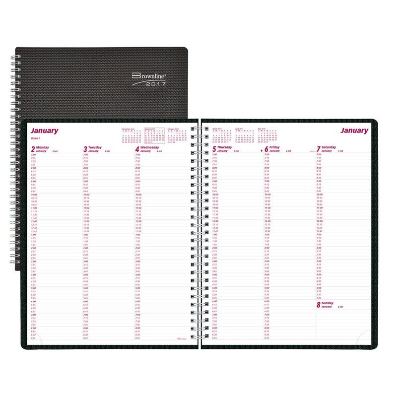 Brownline DuraFlex 2017 Weekly Planner, Twin-Wire, Black, 11 x 8.5 inches (CB950V.BLK-17)