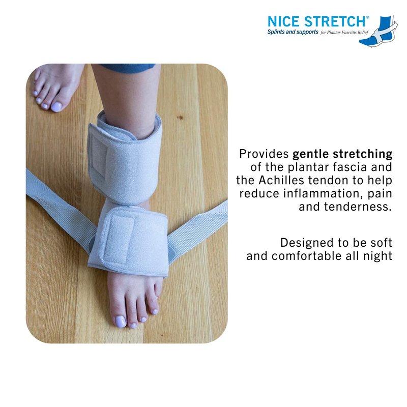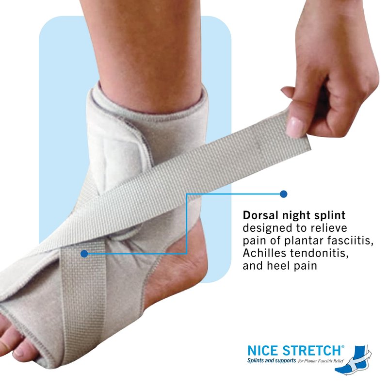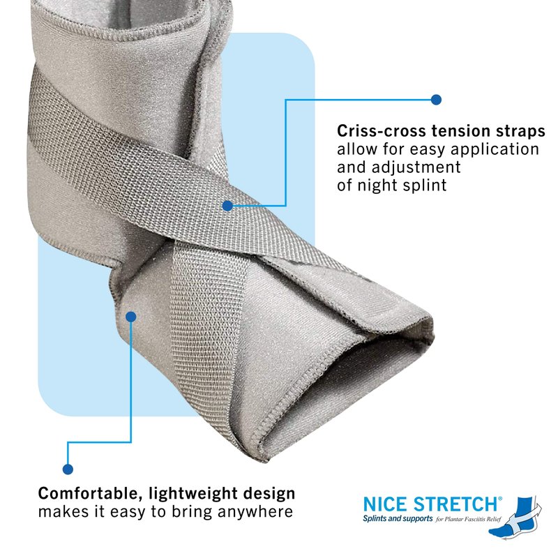 - Night Splint: Keeps foot in the neutral position during sleep to support relief from plantar fasciitis