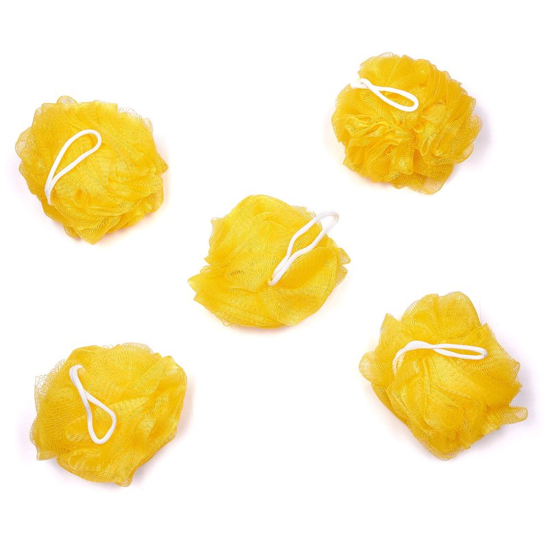 BRUBAKER Cosmetics - Premium Bath & Shower Sponge - Exfoliating Body Pouf - with String for Hanging - 5 Pack - Yellow