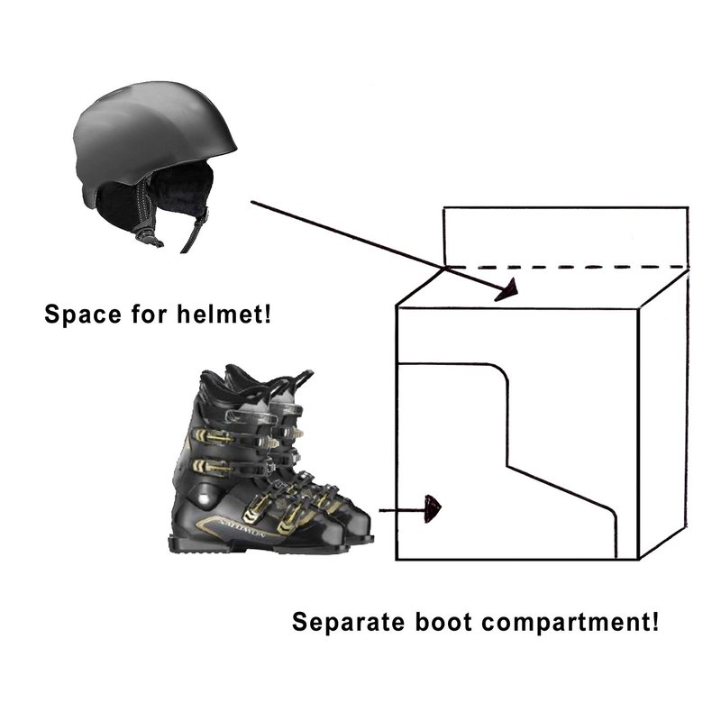 High-quality finished winter sports bag with separate boot compartment, easily accessed via a zip fastening on the side. Water-repellent adjustable inner boot bag to keep wet and dirty boots separate from the roomy main compartment! Enough storage space for helmet, gloves, hat or clothing, easy access via arch zip. Additional zippered front compartment and side pocket, carry straps with padded handle, adjustable rucksack straps, thus also ideal for carrying as a backpack. Incl. rubber spike feet (so bag can`t slide away) and address panel.