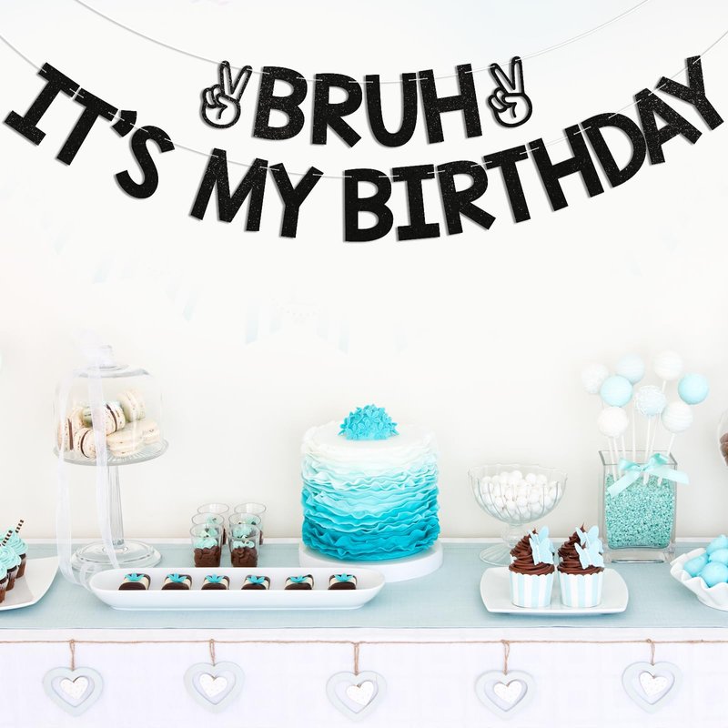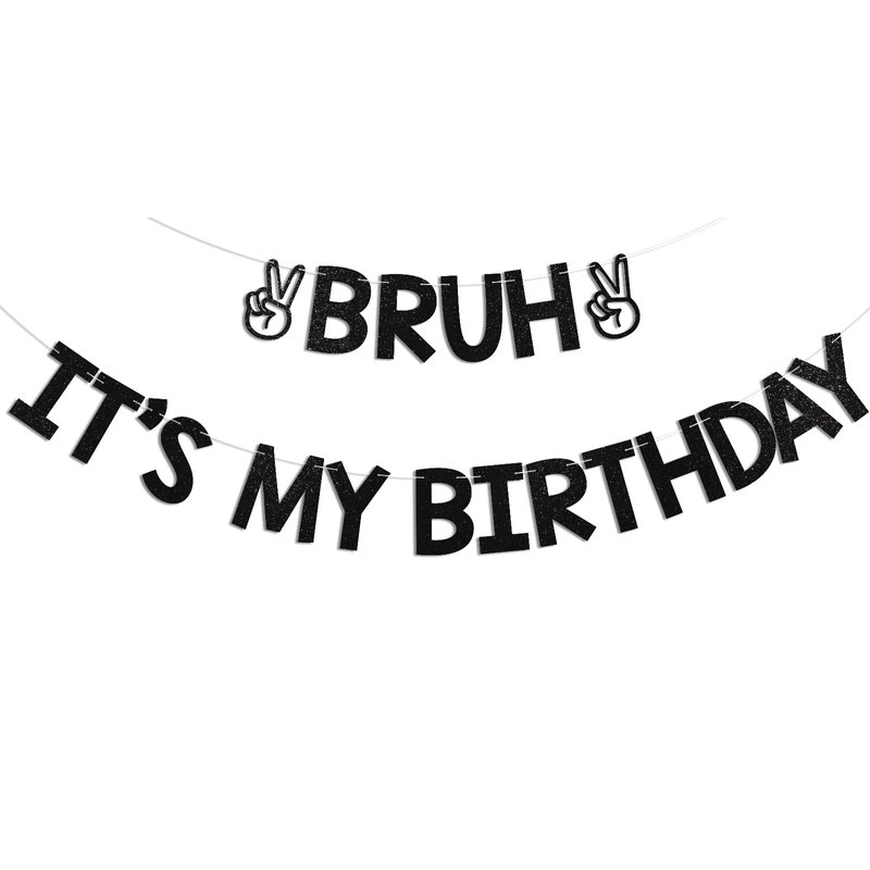 1 x "Bruh It’s My Birthday"banner in black glitter