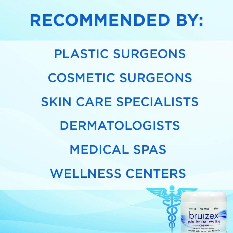 BRUIZEX Cream – POWERFUL RELIEF FOR PAIN, BRUISE AND SWELLING Bruizex pain, bruise and swelling cream is a powerful anti-inflammatory skin care formula that reduces pain and decreases the appearance of bruises and swelling after trauma and surgery. This unique moisturizing gel is recommended by healthcare professionals to help decrease pain and the appearance of skin bruises and swelling in patients undergoing cosmetic surgical procedures or suffering from soreness in muscles, joints and tendons. It excellent to use as a topical analgesic for care after sport injuries. Nature’s most potent natural anti-inflammatory and anti-pain agents were handpicked and combined in one powerful blend. Arnica Montana has been used in medicine for centuries and Its powerful anti-inflammatory effects are well documented. Bruizex cream contains Menthol – natural analgesic to help with pain associated with tissue injury. Bruizex pain, bruise and swelling cream can be safely taken with other anti-bruising agents. This product was designed to enhance anti-bruising effect of Bruizex oral supplement (Bromelain and Quercetin Complex) that have been successfully used by thousands of people. Bruizex pain, bruise and swelling cream is perfect to help with recovery after cosmetic surgery, sport injury and great relief for those suffering from chronic skin, muscle, nerve and joint pain. Enhance your recovery!! Recover Fast with Bruizex!
