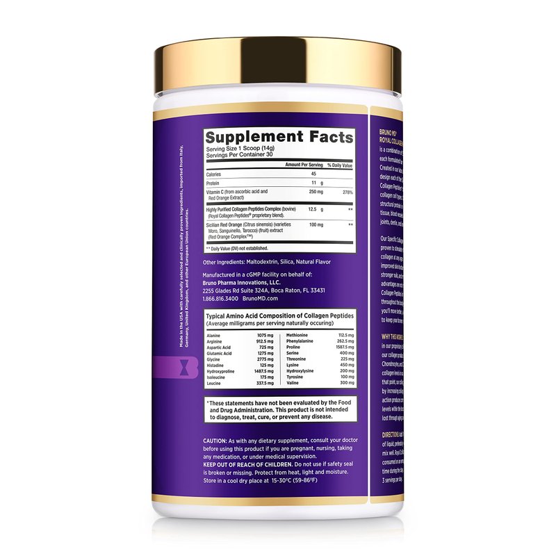 Bruno MD Royal Collagen Peptides, Clinically proven, Dietary Supplement, Improves Skin & Cellulite, European Sourced, Improves the Look of Hair & Nails, Blended with Vitamin C, Bone & Joint Supplement