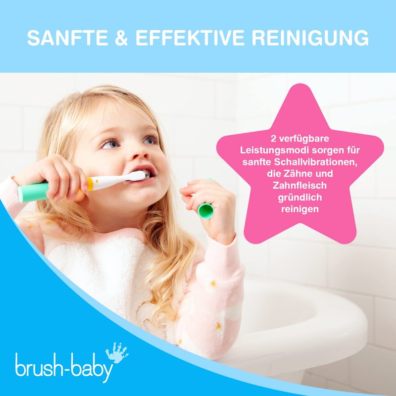 Brush-Baby Go-Kidz Electric Toothbrush is a fun way for children to care for their teeth every day and while on sleepovers or on holiday. It comes with a cover that helps keep both brush and suitcase clean and we've included stickers to customize!!! To clean your Go-Kidz: Rinse with water and leave to dry. Ensure the brush is dry before replacing the lid. For best brushing results: Replace every 3 months or when the bristles begin to wear or splay.