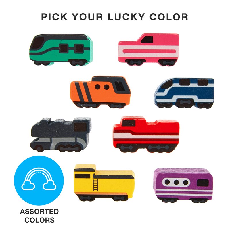 - Pick Your Lucky Color: Choose between red, yellow, green, blue, pink, orange, purple, or black. This pack comes with 8 wooden trains, each a different color, and 6 markers to match