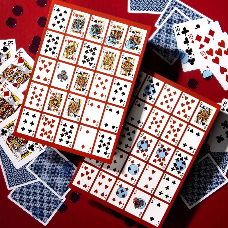 Want to spice up your game? Try one of the two variant games using poker rules. When each player can form a five card hand from a column or row on their card, compare hands - best poker hand wins!