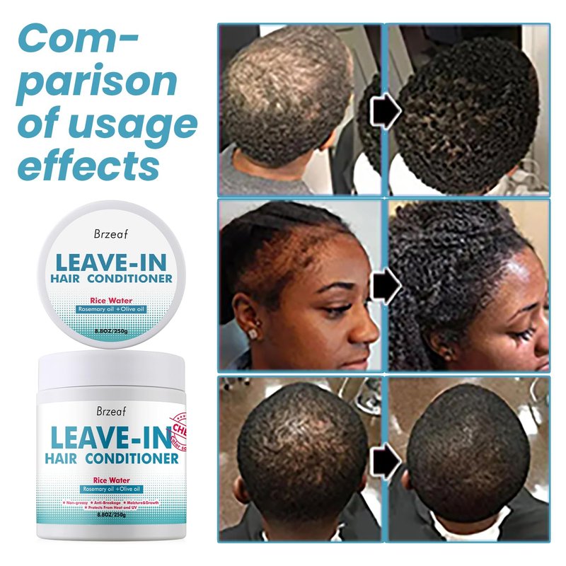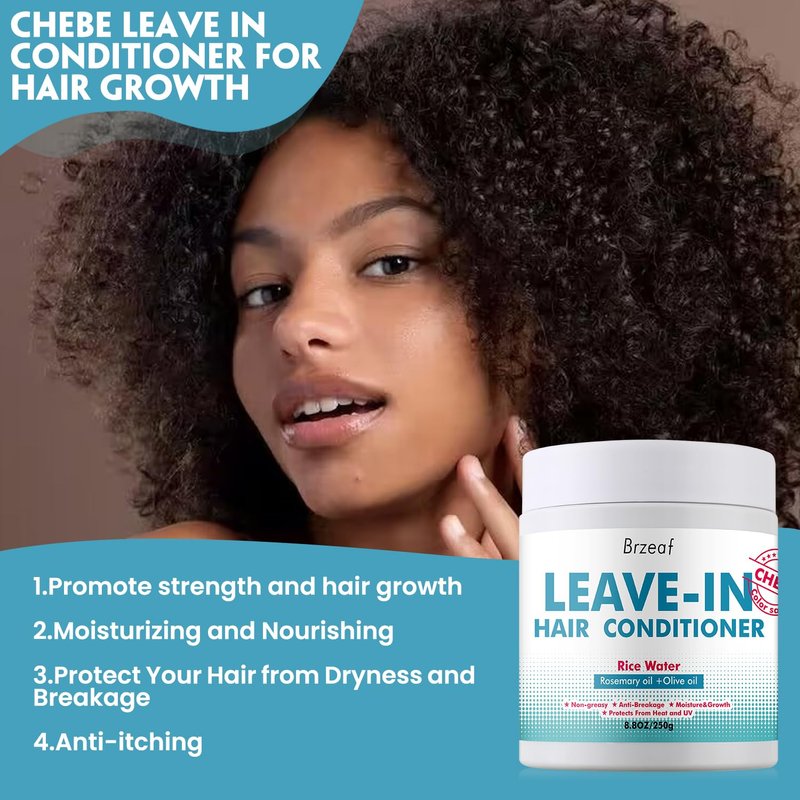 Brzeaf chebe leave in conditioner with rice water. The Chebe + Rice Water Rinse Conditioner, designed to promote healthy hair growth and nourishment for your hair. Our premium chebe leave in hair conditioner is formulated with natural ingredients, making it safe and gentle for daily use. Rice water is also known to be rich in vitamins and minerals that help to nourish and strengthen hair strands,and provide essential nutrients to your hair, leaving it soft, shiny, smoothing and healthy-looking. This conditioner also has an anti-itch effect.