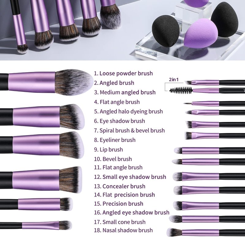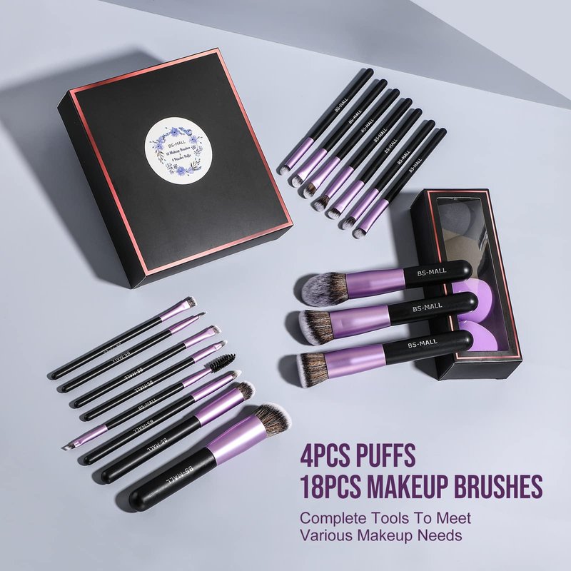 BS-MALL Makeup Brushes Premium Synthetic Foundation Powder Concealers Eye Shadows Makeup 18 Pcs Brush Set with 4 Pcs Makeup sponge Set