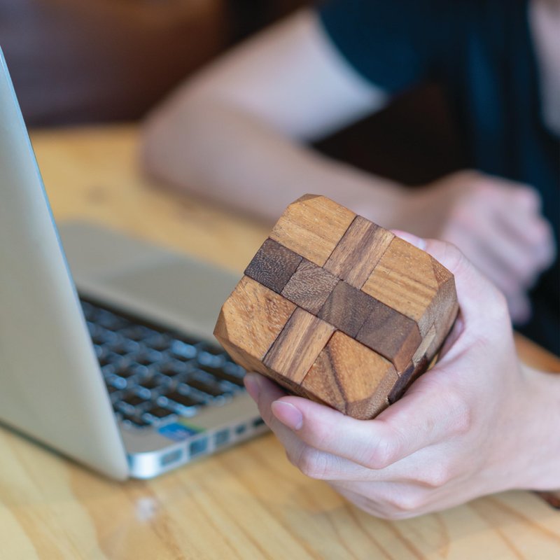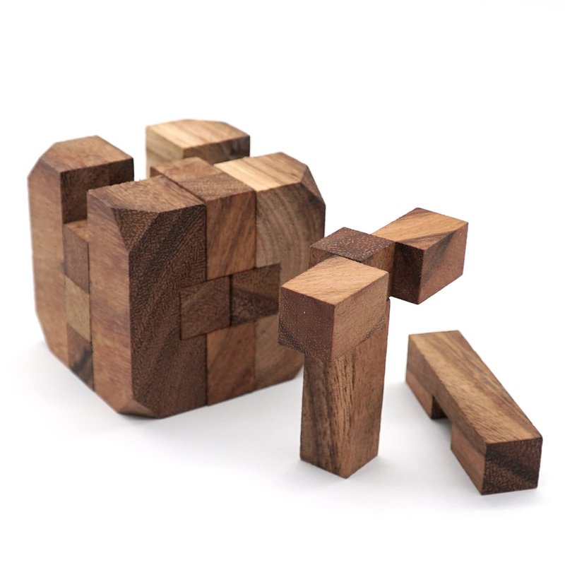 - WOODEN PUZZLES FOR ADULTS MIND GAMES - The magic wooden cubes brain teasers for adults and kids puzzle set is made of 100% natural wood. Durable Monkey Pod wood has been used and every piece of the set is handcrafted with great precision to ensure an easy and correct fit. The wood is hypoallergenic and chemical free with no discernible odor