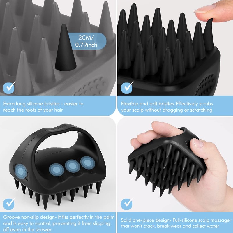 Bsisme Scalp Massager Hair Growth, Scalp Scrubber with Soft Silicone Bristles for Dandruff Removal, Shampoo Brush for Men Women Kids Pets Wet Dry Hair Scalp Exfoliator, Black