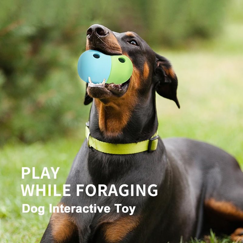 The splicing leakage design allows for outdoor and indoor playing, as well as placing the dog food inside, and the food will fall out of the two holes during the rolling process.