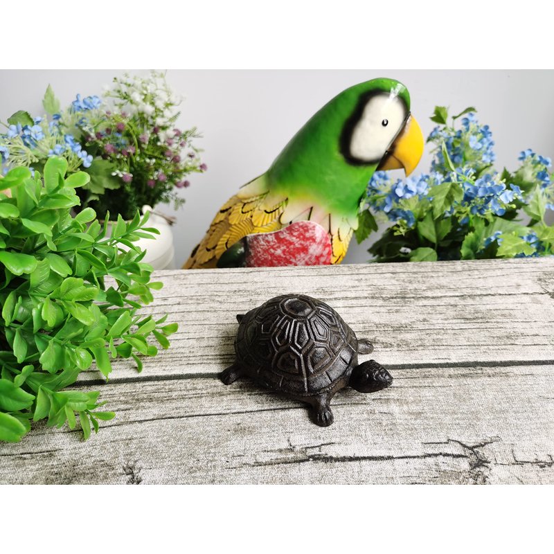 - Overall dimension is about 4.3x3.0x2.0". Rustic garden decorative cast iron turtle is perfect décor for the home or garden,An ideal size to go undercover in the existing bushes, plants, or landscape of your yard or garden.
