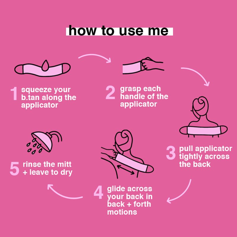 - BEST PRACTICE. firmly grasp each handle of the tan back applicator. think of it kind of like a towel, for tanning - for easy tanning. put a small amount of b.tan self tan mousse or lotion along the applicator. pull the applicator tightly across your back and glide all over your body in back and forth motions. ta-da! you're back in the tanning game
