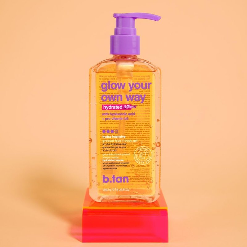 b.tan Face & Body Clear Self Tan Gel | Glow Your Own Way Hydrated - Ultra Hydrating, Transfer-Resistant, Gradual Sunless Tanning Gel for Face and Body, Vegan, Cruelty Free Self Tanner, 8 Fl Oz