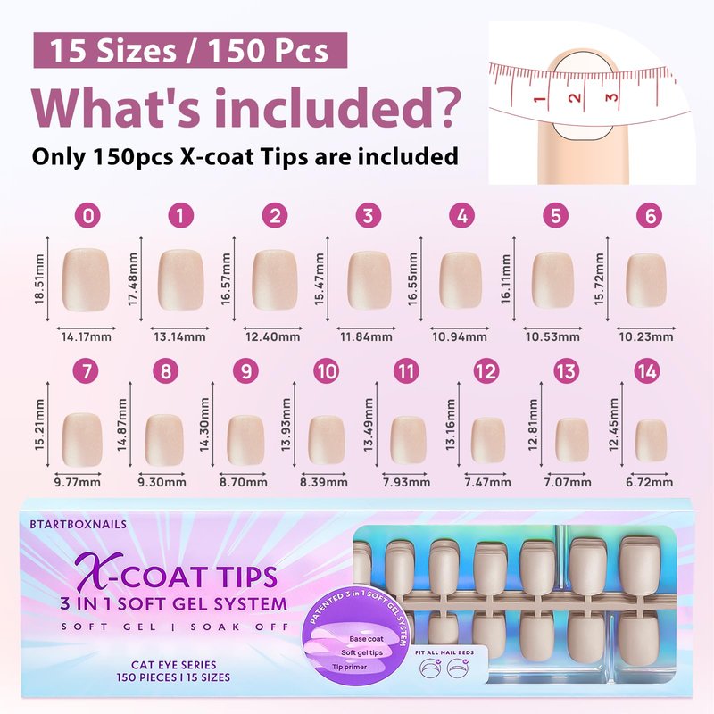 - IDEAL FOR CAT EYE MANICURE: Btartboxnails x-coat tips cat eye press on nails (top coat needed) set bring you the netural color and the classic design. Ready to go with one bulider gel and one top coat. Also you could create your unqiue deisgn with it in less steps.