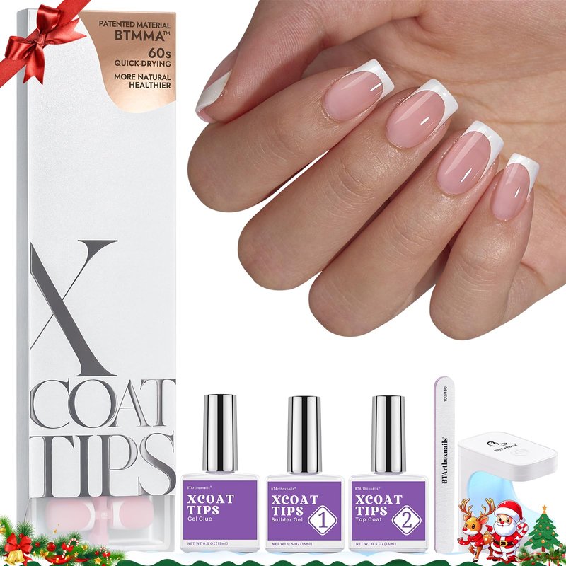 - IDEAL FOR FRENCH MANICURE: BTArtboxnails XCOATTIPS French Gel Nail Kit brings you netural colors and classic designs. Nail tips, nail gel, builder gel, top coat, nail lamp and nail file contained. You can create your unique design in fewer steps