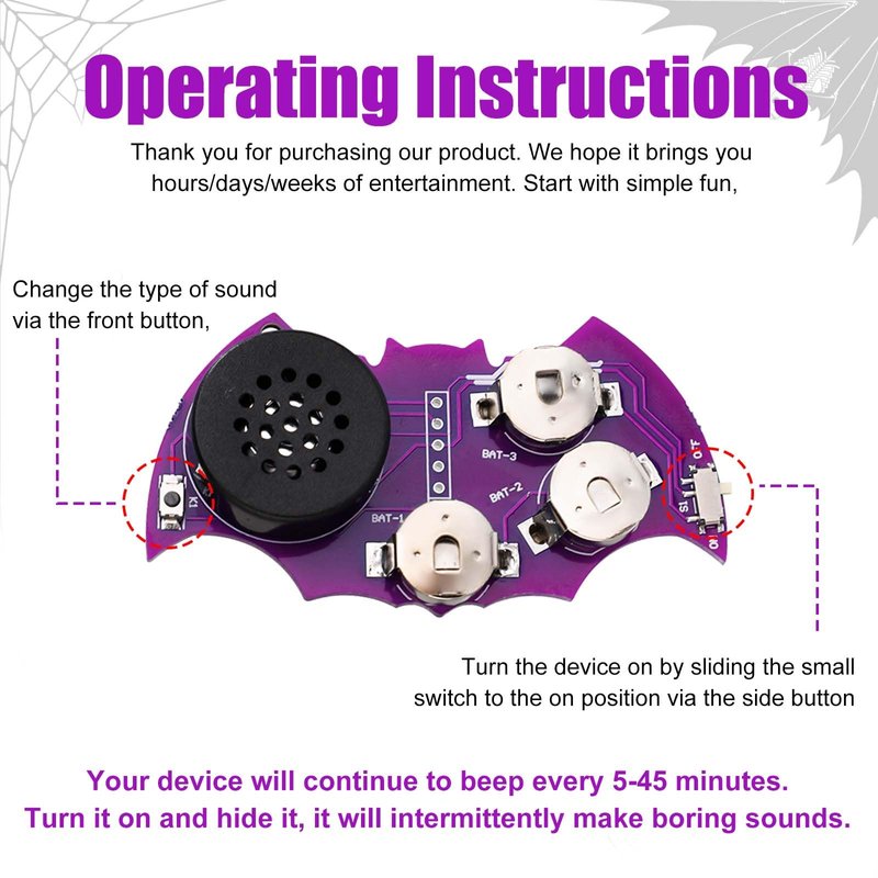 - Product Contents: You will receive 1 purple bat-shaped annoying noise maker, which come with 3 batteries, 1 round double-sided tape and 1 black lanyard, enough to meet your Halloween playing needs.