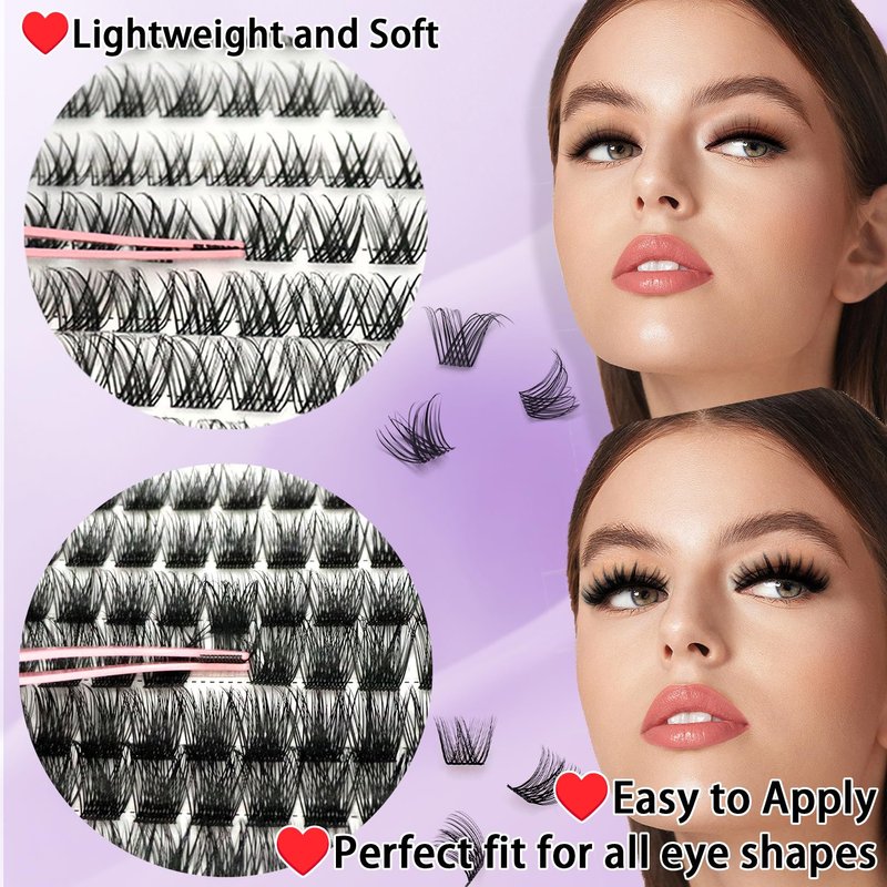 - Versatile Look Styles: Different Look Styles Depend on You: Create customizable lash looks with our individual lashes clusters in various lengths and volumes. This lash cluster pack is versatile and can be used for a variety of occasions, whether it's a night out with friends, a special event, or even a day at work. Achieve your desired look quickly and easily!