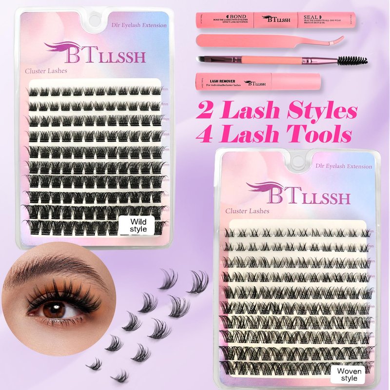 BTLLSSH Lash Extension Kit DIY 240pcs Lash Clusters Eyelash Extension Kit Individual Lashes Kit with Lash Bond & Seal Remover Lash Tweezers for Self Use (003E-0.31-0.63INCH-MixStyles)