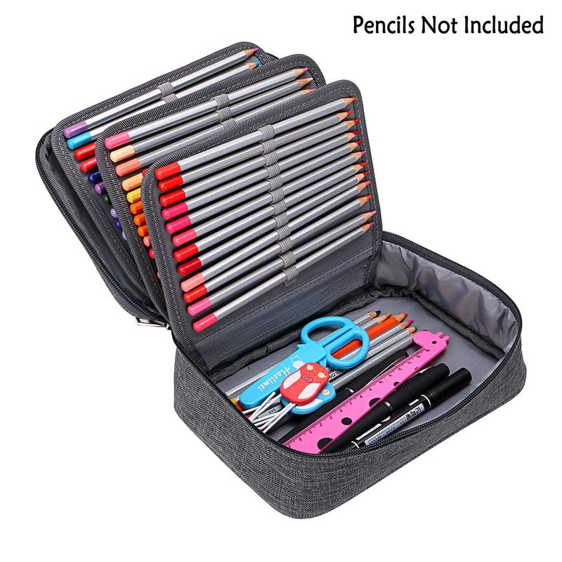 BTSKY® High Capacity Zipper Pens Pencil Case- Multi-Functional Stationery Pencil Pouch 72 Slots Colored Pencil Case Portable Pencil Bags With 2 Removable Sleeves Grey