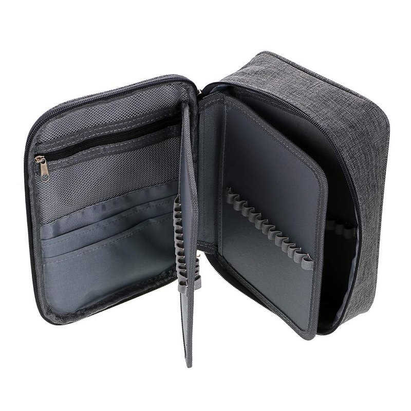 Compact pencil bag with maximum storage space. This pencil holder has 6 compartmentalized sleeves on three double-sided flaps to sort color pencils and gel pens for easy glance. No more digging from a messy pencil box. When you unzip this pencil case, you can access to all colors.