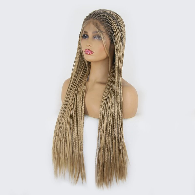BTWTRY Braided Synthetic Lace Front Wigs for Women Ombre Honey Blond Heat Resistant Fiber Hair Micro Braided Hair Box Braids Wig African American Hair (24inch, 4T/Honey Blonde)