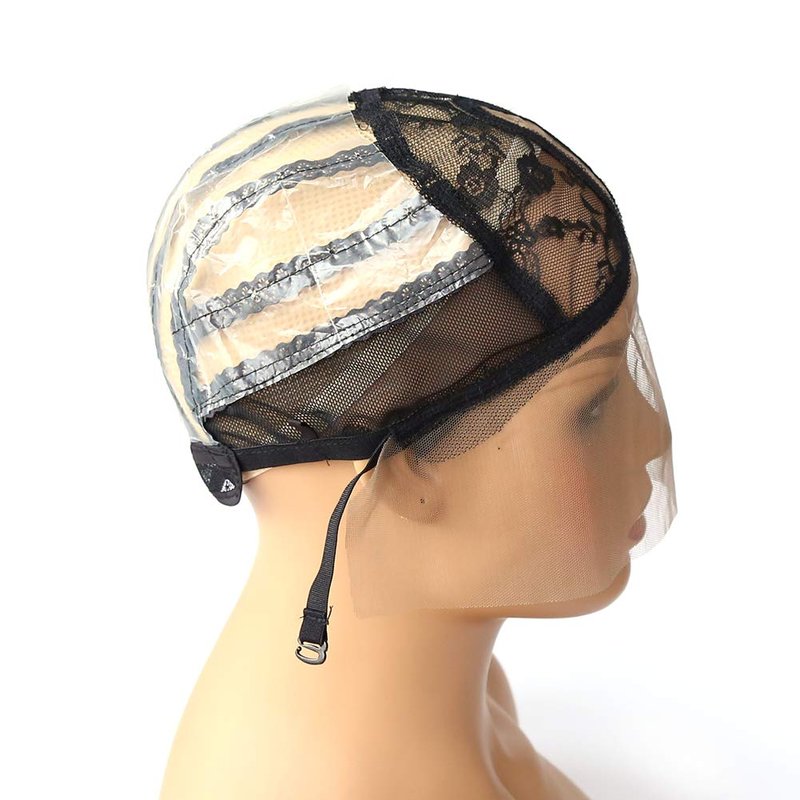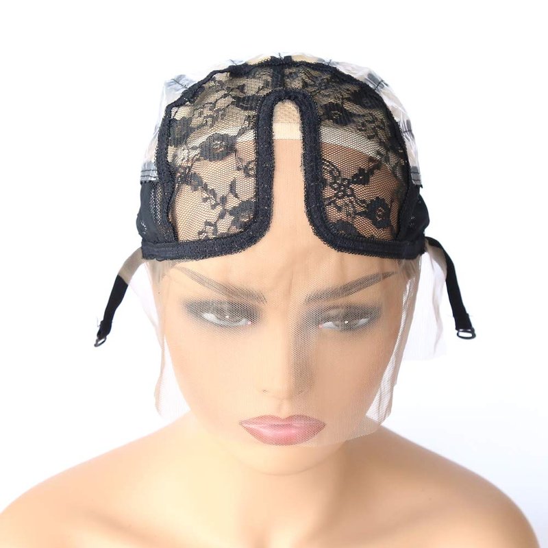 BTWTRY U Part Wig Cap with Lace for Wigs Making with Adjustable Strap Middle Part Medium Size Black Weaving Wig Cap for Women and Girls DIY Wigs (1 Pc, 0051)