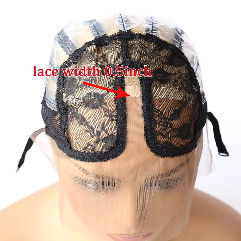 BTWTRY U Part Wig Cap with Lace for Wigs Making with Adjustable Strap Middle Part Medium Size Black Weaving Wig Cap for Women and Girls DIY Wigs