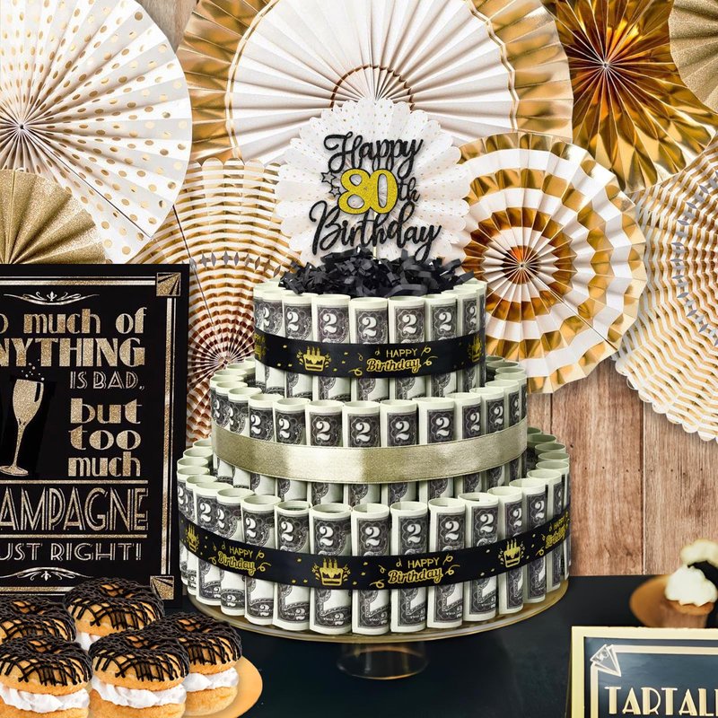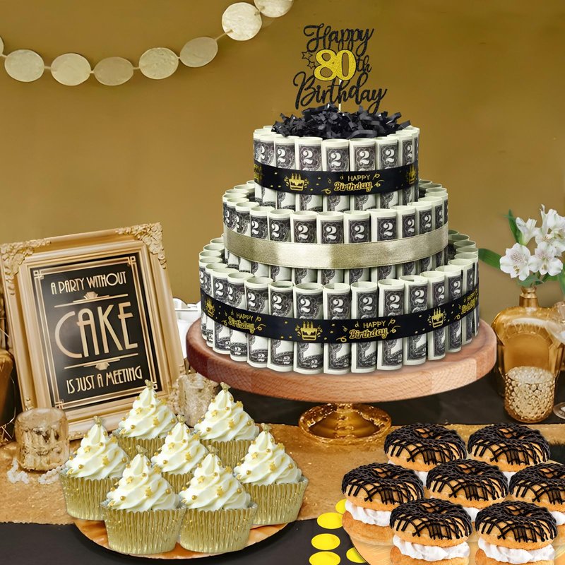 - 【80th Birthday Money Cake】Do you want to surprise your friend gift ?Nothing is more exciting and surprising than receiving money as a gift. This birthday money cake is an excellent choice for any occasion!fake cake gift box treats come with everything you need to DIY your birthday event giveaways. Let who receiving exclusive gifts feel your heart.
