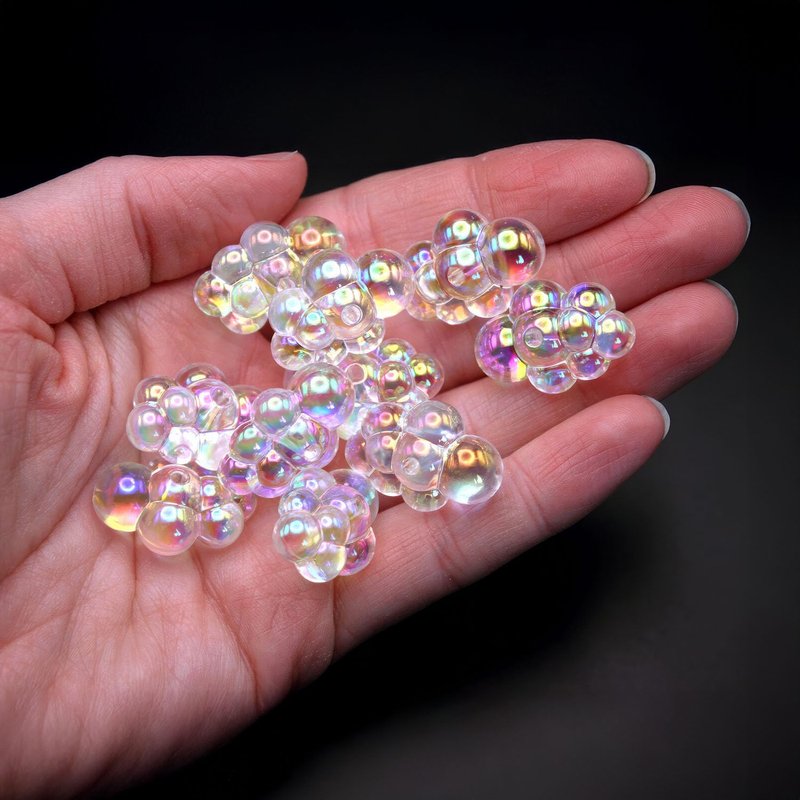 - Bubble clusters, miniature acrylic faux bubbles for a 1:6 scale dollhouse bath tub, kitchen sink. Also great for a fairy garden or zen garden model beach display or for use as embellishments in hair bow crafts! These clear semi-translucent rainbow shimmering bubble cabochons are a rare find and also have a tiny drilled hole through the middle, allowing for the possibility of use as beads for making earrings, pendants or other forms of jewelry crafts.