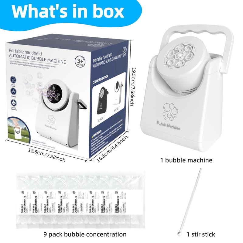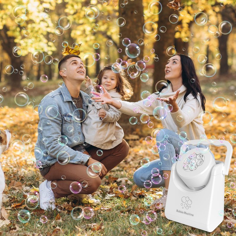 - Automatic Bubble Machine: This bubble machine, equipped with an adjustable angle and including 9 packs of 30ml bubble solution, can produce over 5000 colorful bubbles, captivating kids and entertaining pets such as dogs and cats. It creates a delightful atmosphere for various occasions like parties, weddings, outdoor events, and birthdays. Whether placed in the yard, park, or indoors, it adds joy to any festivity.