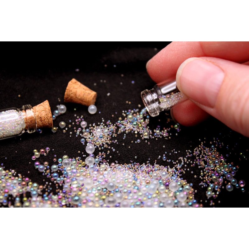 Bubble Pixie Dust Mixed Sizes, Iridescent Clear Glass Microbeads, Tiny Round Bubbles Powder, Waterbeads Sprinkle Toppings, for Fairy Dust Bottle, Resin Filler, Dollhouse Bath Tub (20 Grams)