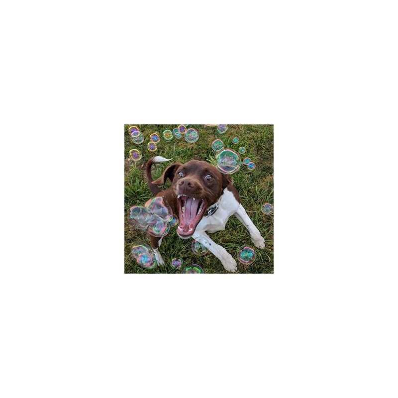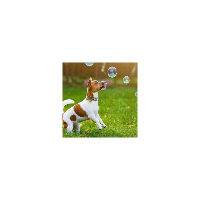It's true! Bacon-scented bubbles are a dog's dream! Fun, colorful bubbles that float in the air AND... they smell like BACON!! If anything's gonna get your dog off the couch... these bacon bubbles are gonna do it! Now, if you really wanna get your pooch excited, pour these bacon bubbles into the Bubbletastic bubble machine and watch your dog go crazy as a massive storm of bacon bubbles comes his way! Better have the video camera rolling for this one! Wellll, it just seems as if dogs can't resist a colored bacon-scented bubble floating in front of them - they just HAVE to pop it. And that really becomes a feat when there's hundreds or thousands of bubbles flying at them. Some dogs literally go frantic with excitement of their "important" task of being the chosen dog to pop all those bacon bubbles! It really is hilarious to watch a dog and his bubbles in action. Plus, all that poppin' is good exercise for dear ol' Fido!