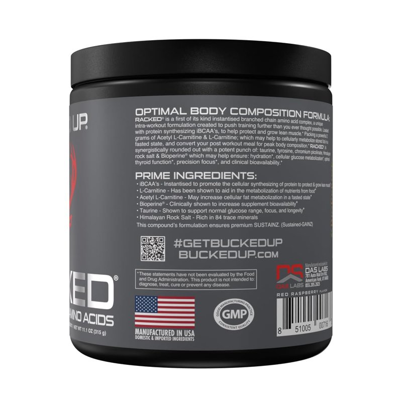 Bucked Up- BCAA RACKED™ Branch Chained Amino Acids | L-Carnitine, Acetyl L-Carnitine, GBB | Post Workout Recovery, Protein Synthesis, Lean Muscle BCAAs That You Can Feel! 30 Servings (Blood Raz)