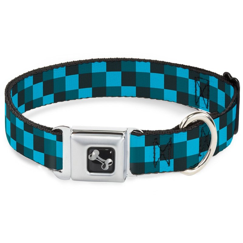 - Style: Buckle-Down Seatbelt Buckle Dog Collar - Checker Trio Baby Blue/Black/Turquoise - 1" Wide - Fits 11-17" Neck - Medium