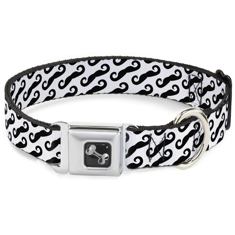 - Style: Buckle-Down Seatbelt Buckle Dog Collar - Diagonal Handlebar Mustaches White/Black - 1.5" Wide - Fits 16-23" Neck - Medium