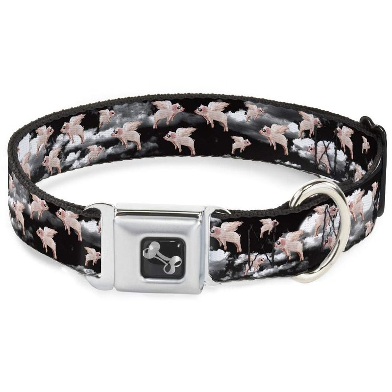 - Style: Buckle-Down Seatbelt Buckle Dog Collar - Flying Pigs Black/White/Pink - 1" Wide - Fits 9-15" Neck - Small