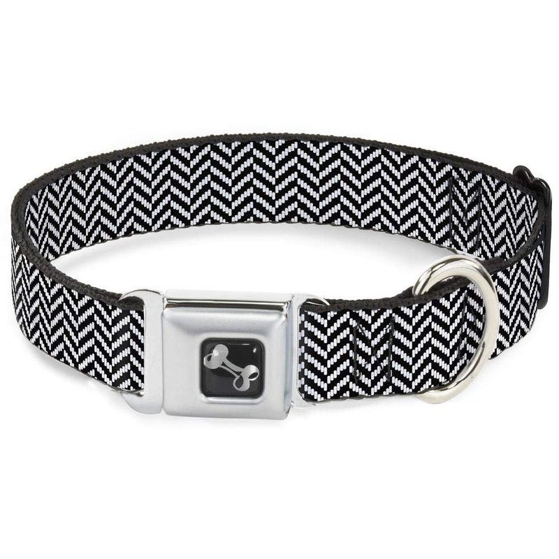 - Style: Buckle-Down Seatbelt Buckle Dog Collar - Herringbone Jagged Black/White - 1" Wide - Fits 11-17" Neck - Medium