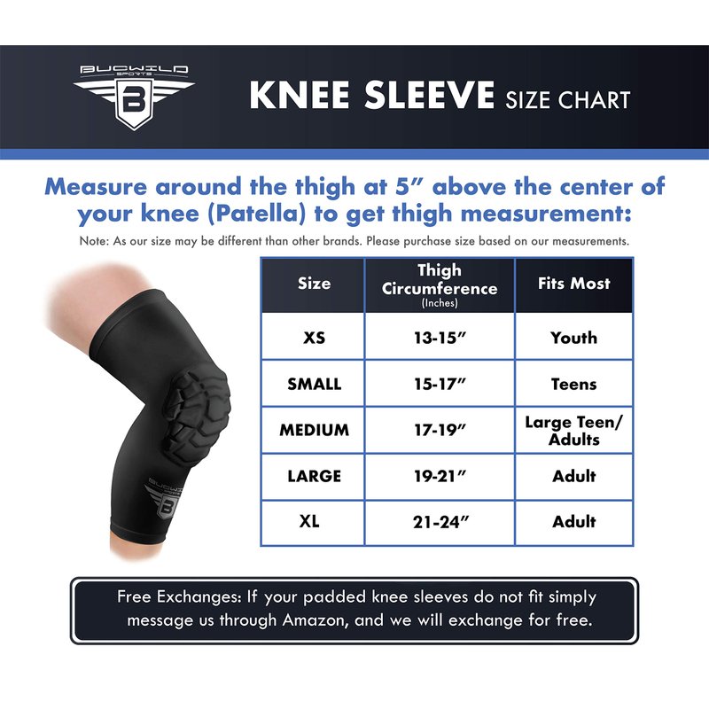 Bucwild Sports padded knee sleeve offers comfortable form fitting knee protection. Our padded knee sleeves protect the whole knee & not just the top of the knee like so many other brands. Bucwild Sports padded knee sleeves conform to your every move thanks to our second skin fit.