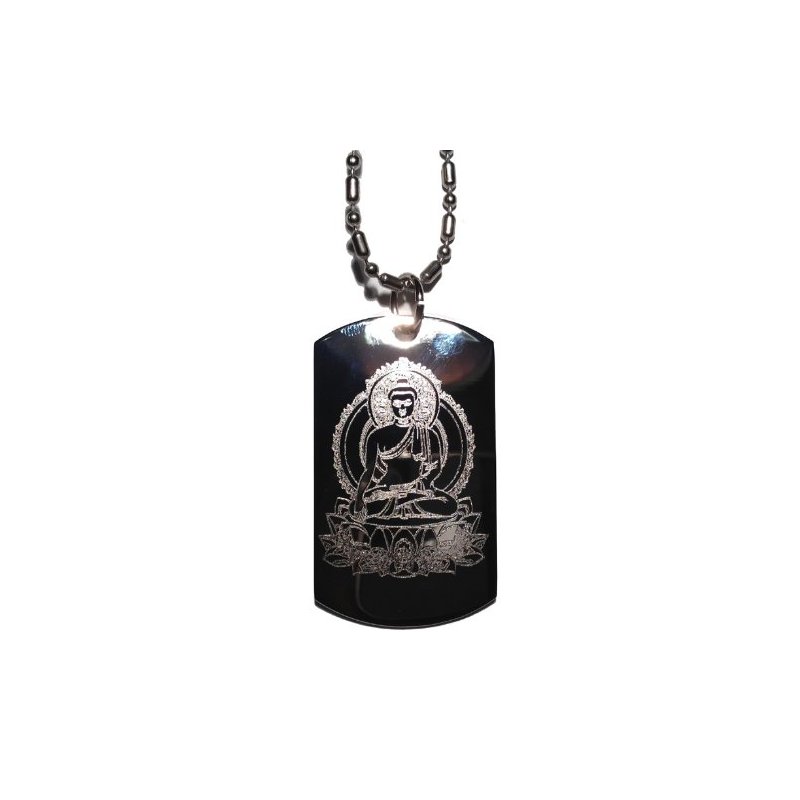 Buddha Sitting on Lotus Leaf Buddhism Religous Symbol Logo - Military Dog Tag Luggage Tag Key Chain Metal Chain Necklace