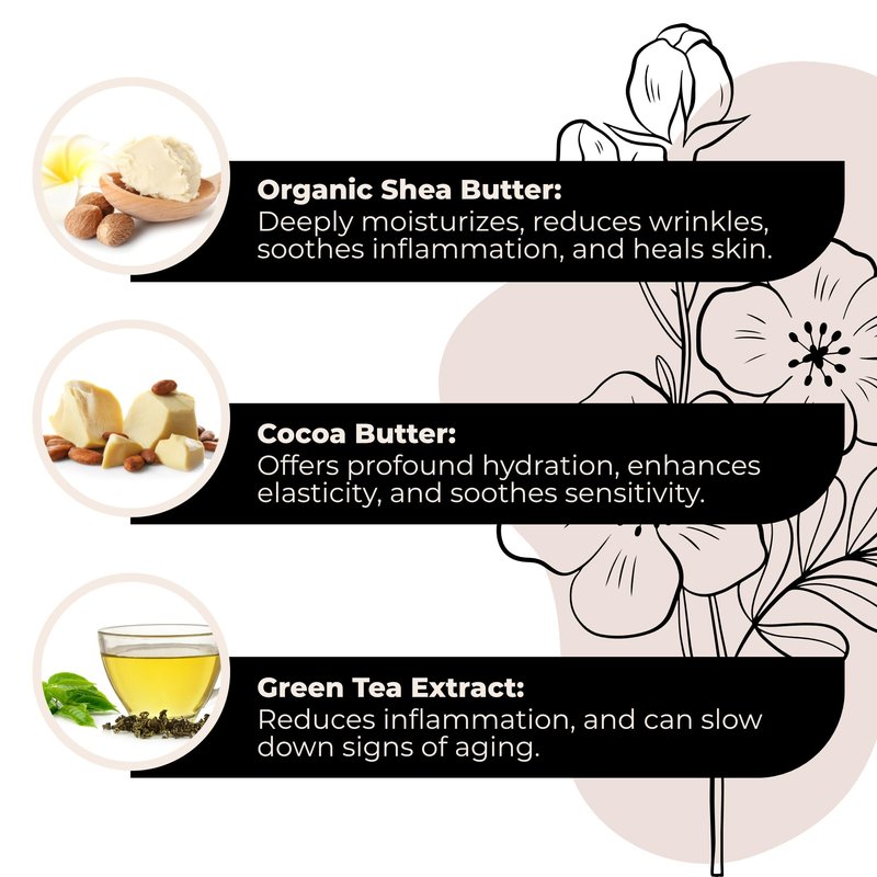- All Day Hydration - Our psoriasis relief bar soap provides 24 hour hydration and help relieve dry, itchy, and irritated skin brought on by psoriasis. Fine lines, crowes feet, age related wrinkles experience the nurishment of Cocoa Seed Butter, Shea Butter, Mango Seed Butter, Green Tea Extract with Catechins. Experience and see the difference a premium bar soap can provide.