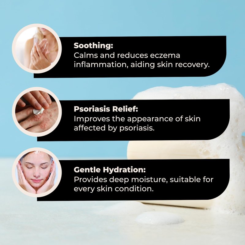 - Skin Care for Everyone - Our specially created bar soap is appropriate for use on adults, children, and anyone who needs relief and wants to take care of their skin. Treat yourself to clean hands, neck, arms, body with a moisterizer focused on those with psoriasis, ance, eczema, crowes feet, fine lines and wrinkles.