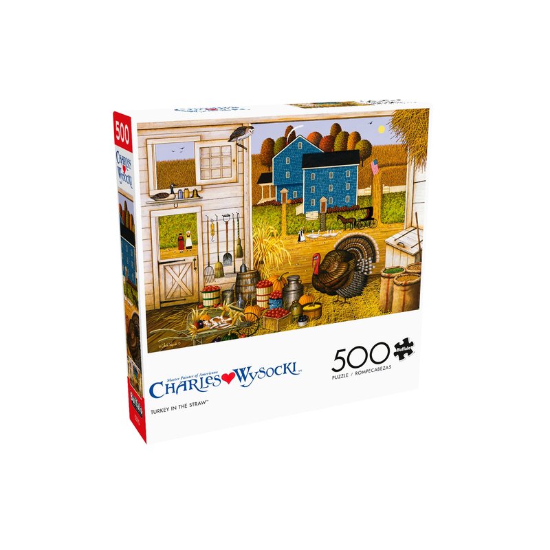 Buffalo Games - Charles Wysocki - Turkey in The Straw - 500 Piece Jigsaw Puzzle for Adults Challenging Puzzle Perfect for Game Nights - Finished Puzzle Size is 21.25 x 15.00