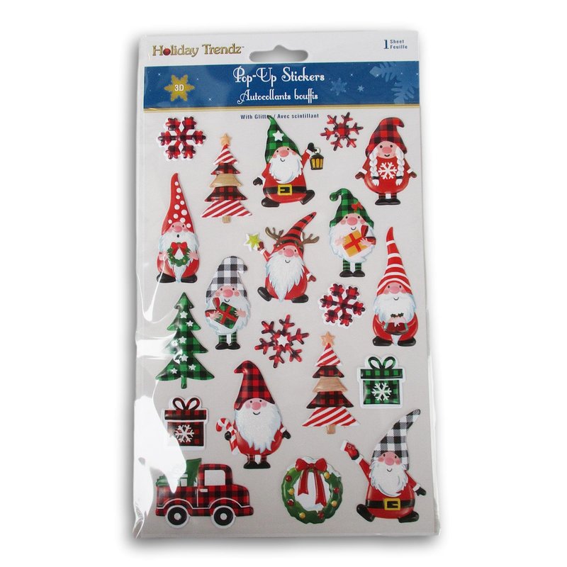Buffalo Gnomes 3D Stickers - Christmas Pop-Up Stickers for Crafts, Cardmaking, Scrapbooks – 20 Pc